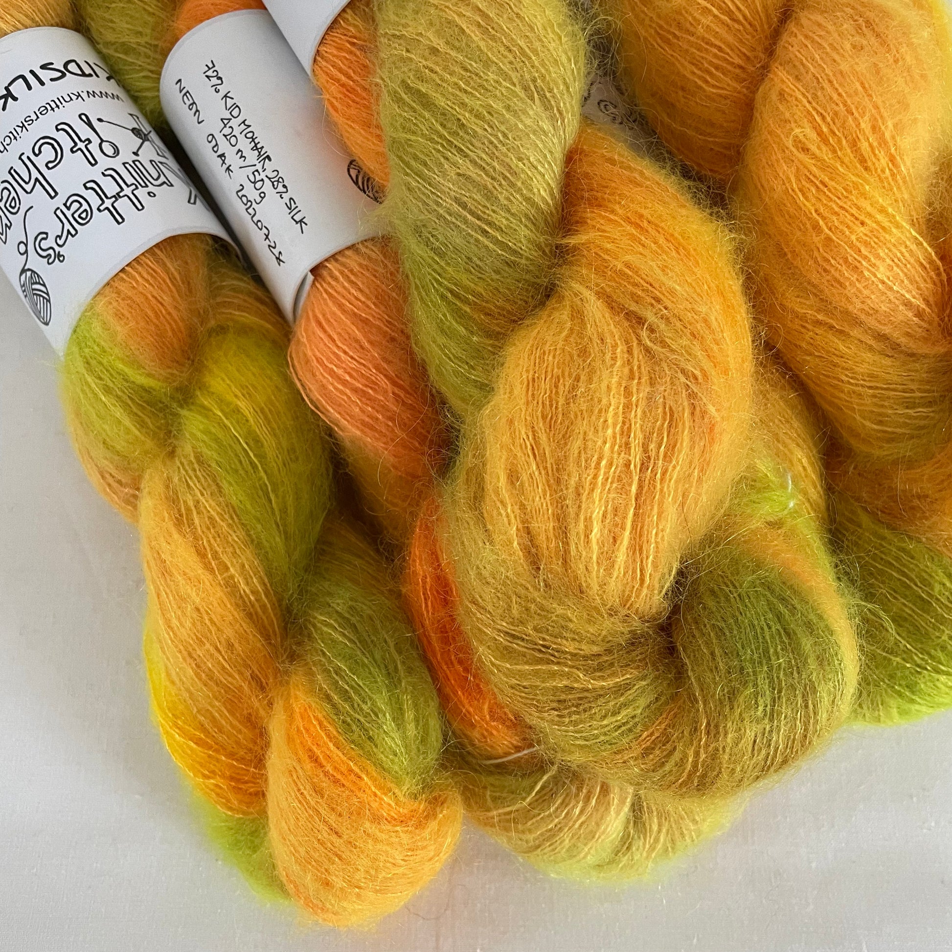 Fiberindhold: 72% børstet mohair, 28% silke.