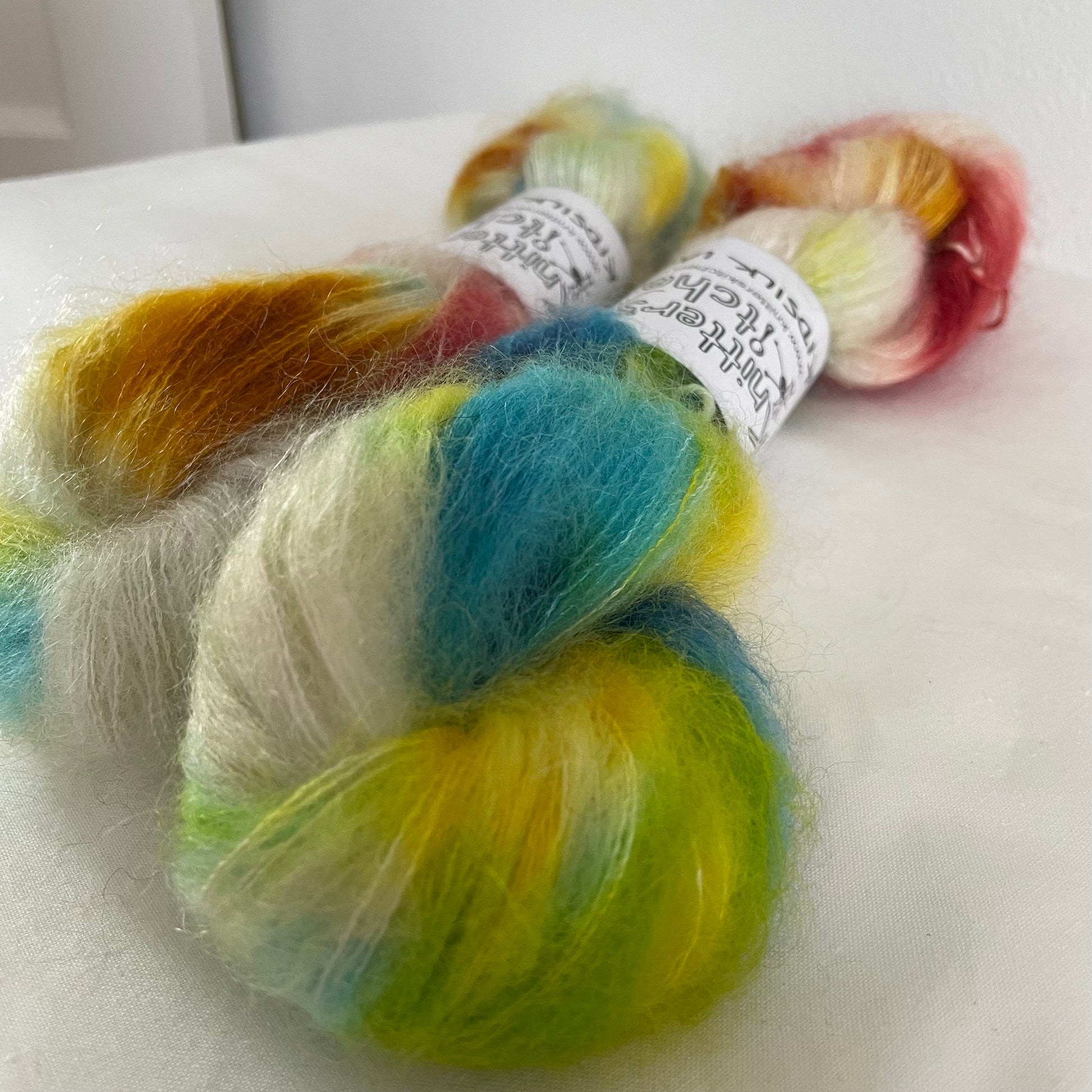 Fiberindhold: 72% børstet mohair, 28% silke.