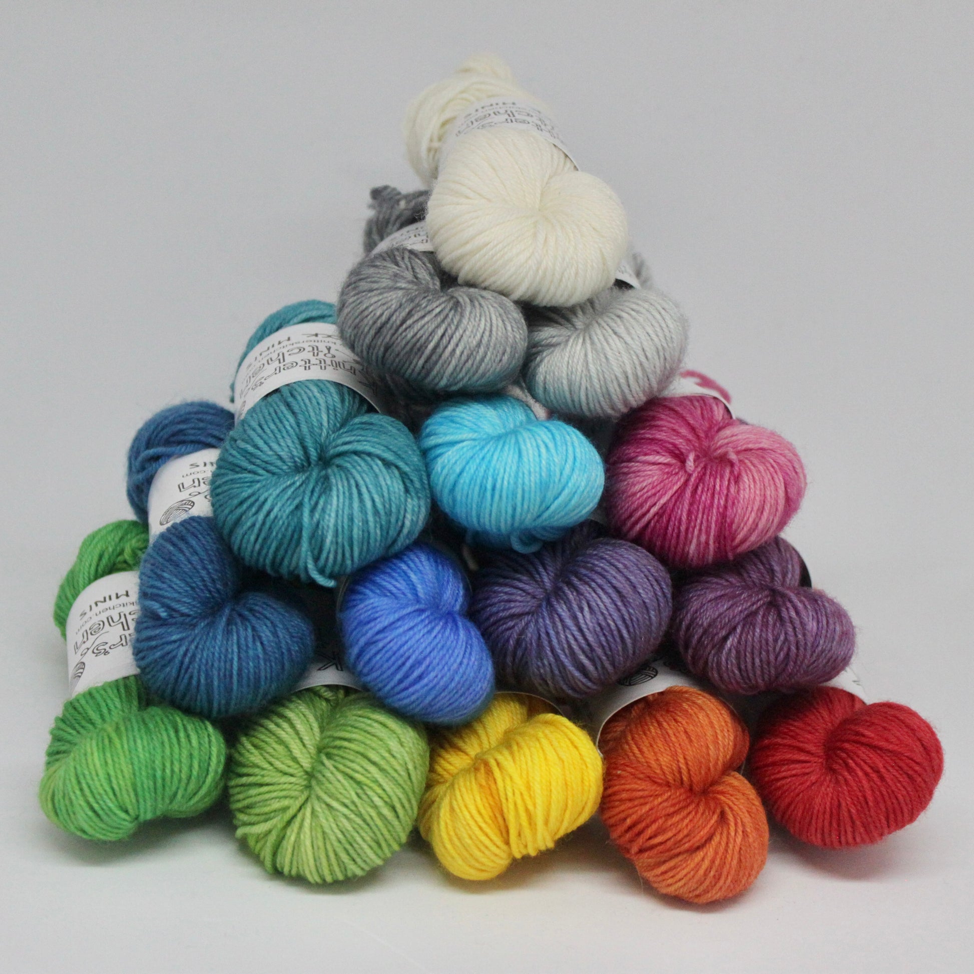 Mini'erne er et lille fed i strømpegarnstykkelse - meget som vores BFL Sock, men her bruges merino i stedet for Bluefaced Leicester uld. Hver mini indeholder 80 m / 20g, og er derfor perfekt til det lille pift af en anden farve i dit projekt, eller hvis du skal bruge mange farver men ikke så meget af hver.