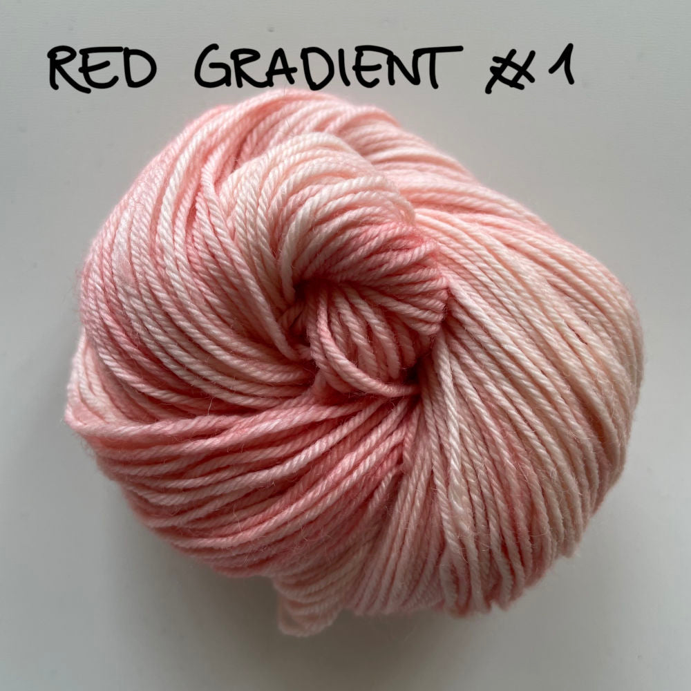 De viste fed på billederne angiver farven, men det er ikke nødvendigvis lige nøjagtigt de fed du modtager. Garnet er håndfarvet i små mængder, og er kan forekomme variationer i farvningen.