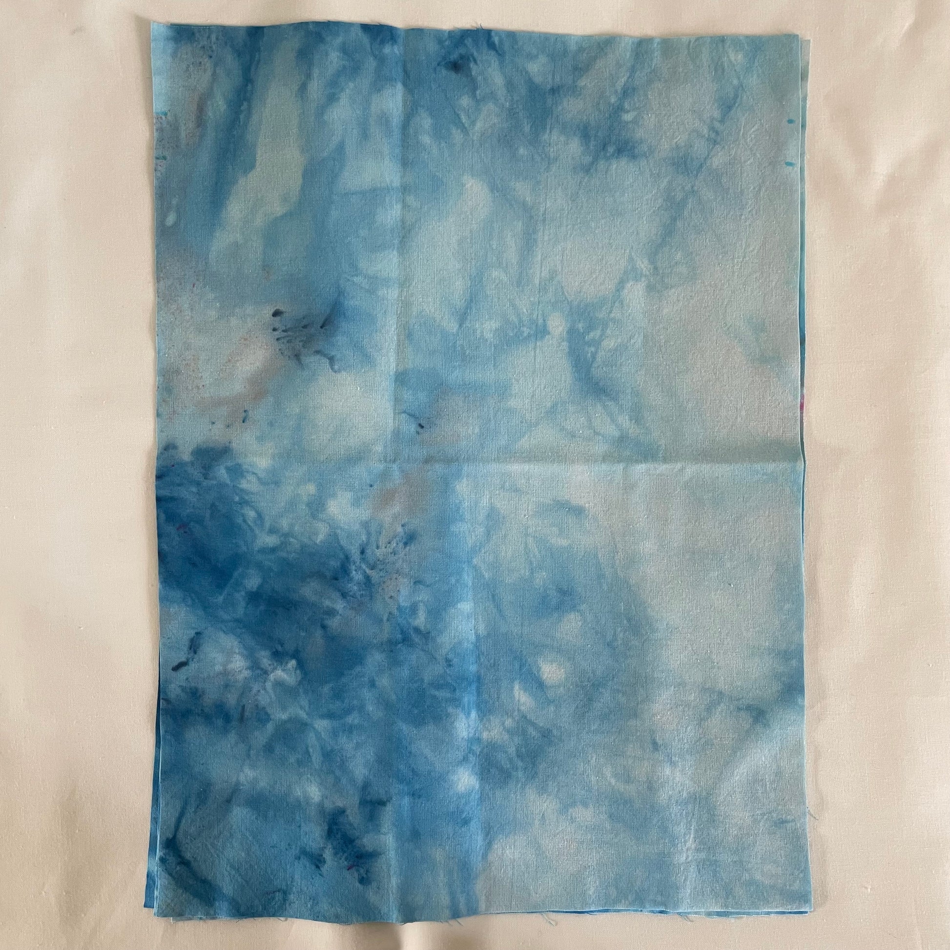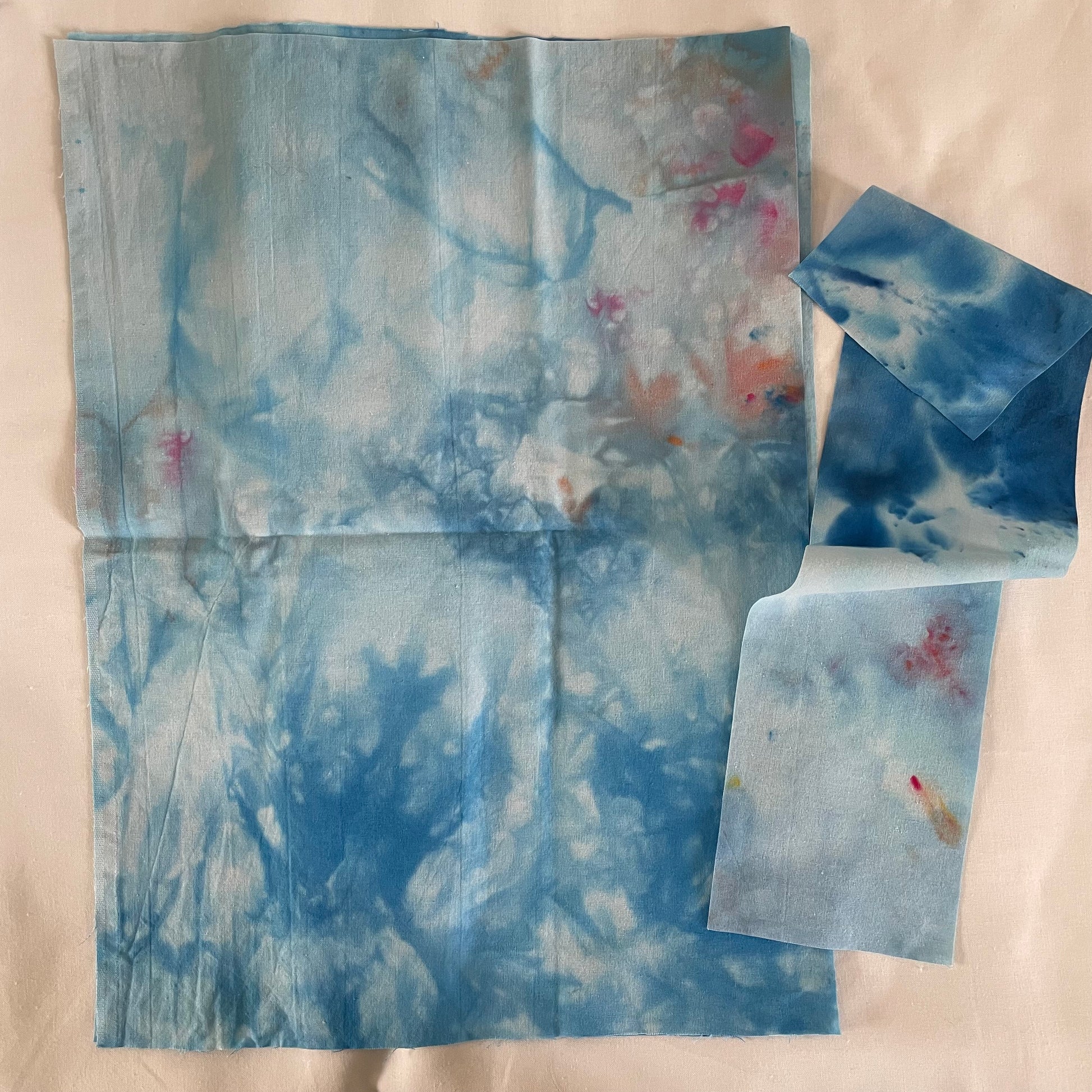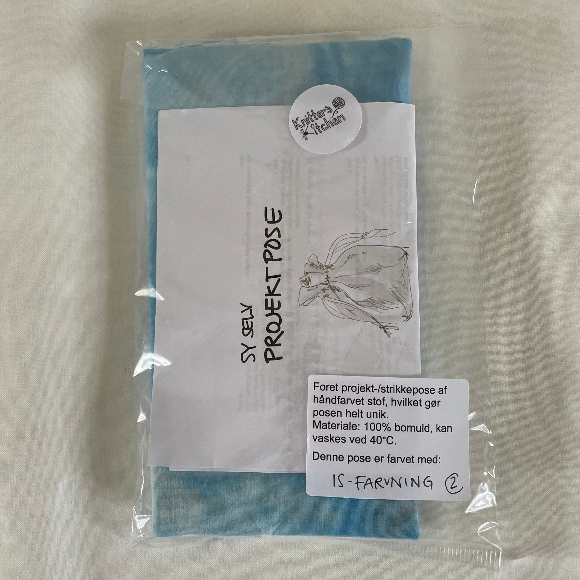 Et sy selv kit til en foret pose med håndtag og lukkesnore. Yderstoffet er farvet med is-farvningsmetoden, hvor stoffet dækkes med is og drysses med farvepulver, hvorefter farven langsomt trækker ned i stoffet efterhånden som isen smelter. Resultatet er fuldstændig uforudsigeligt, hvorved hver pose er unik.