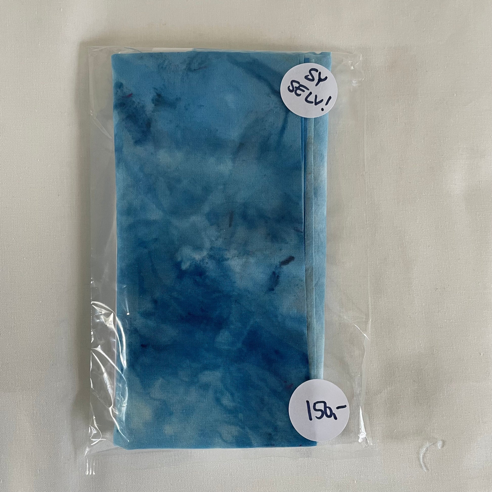 - Yderstof: 2 stykker håndfarvet stof, ca. 30 cm x 40 cm. Markeringer i siderne i toppen af stykkerne angiver løbegang til lukkesnor.