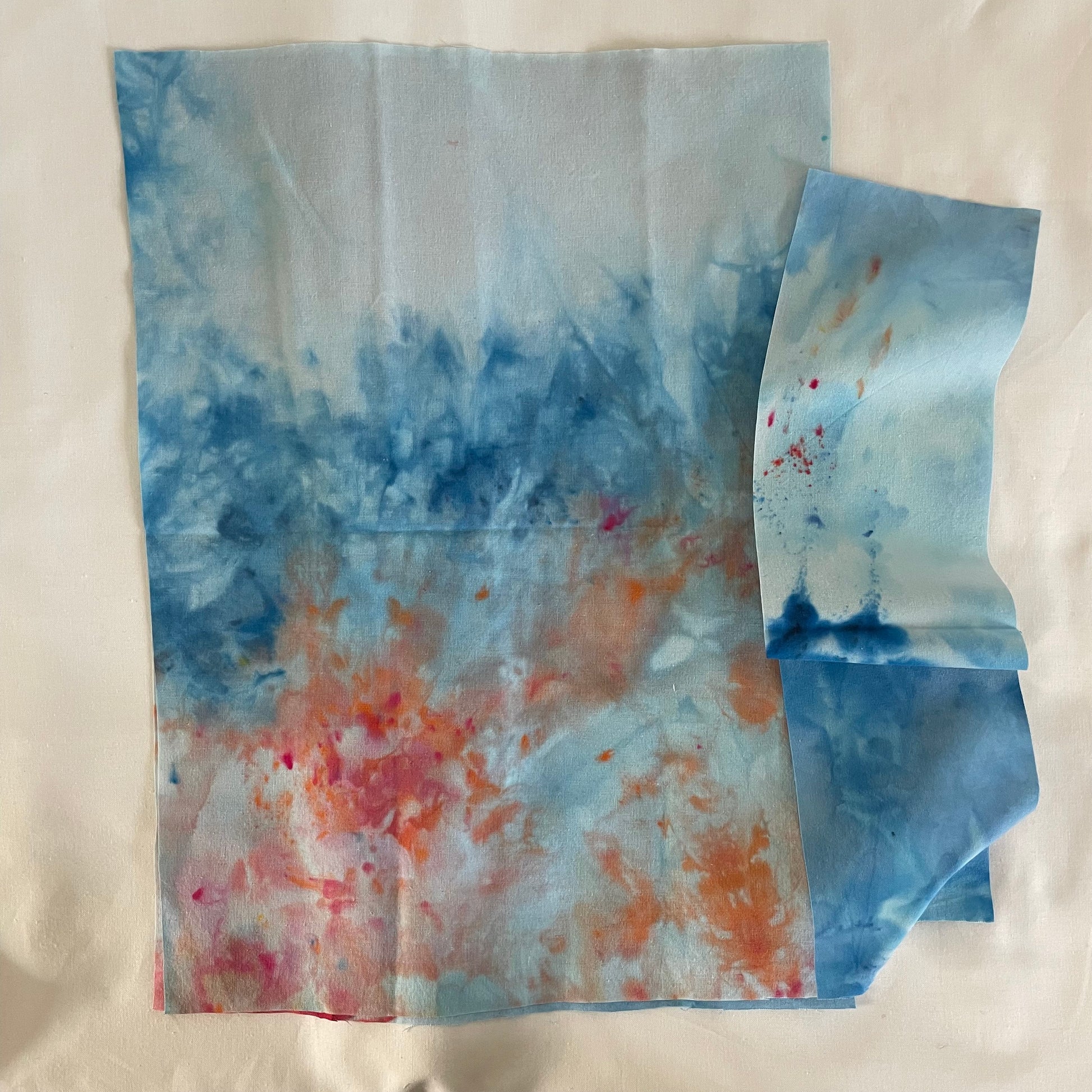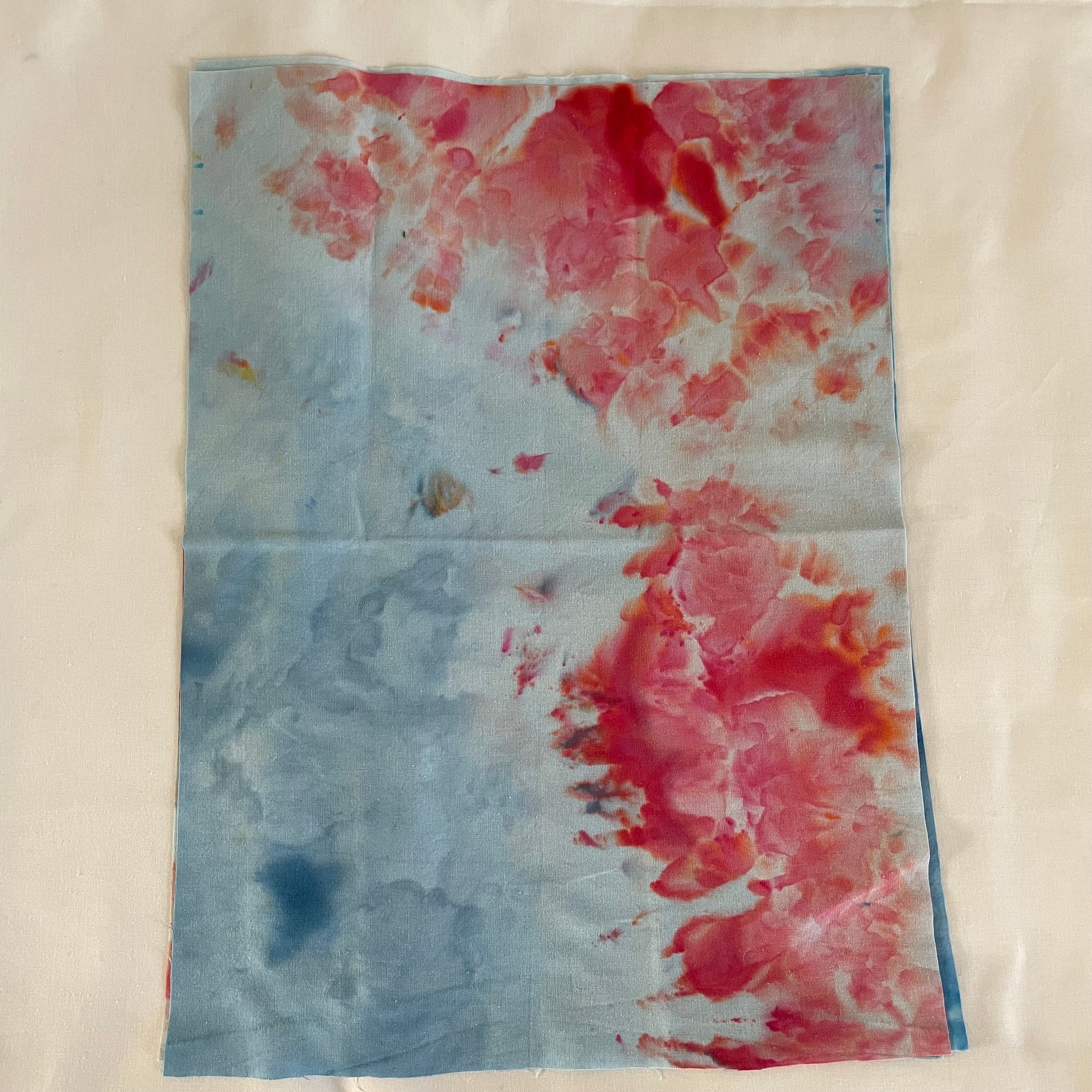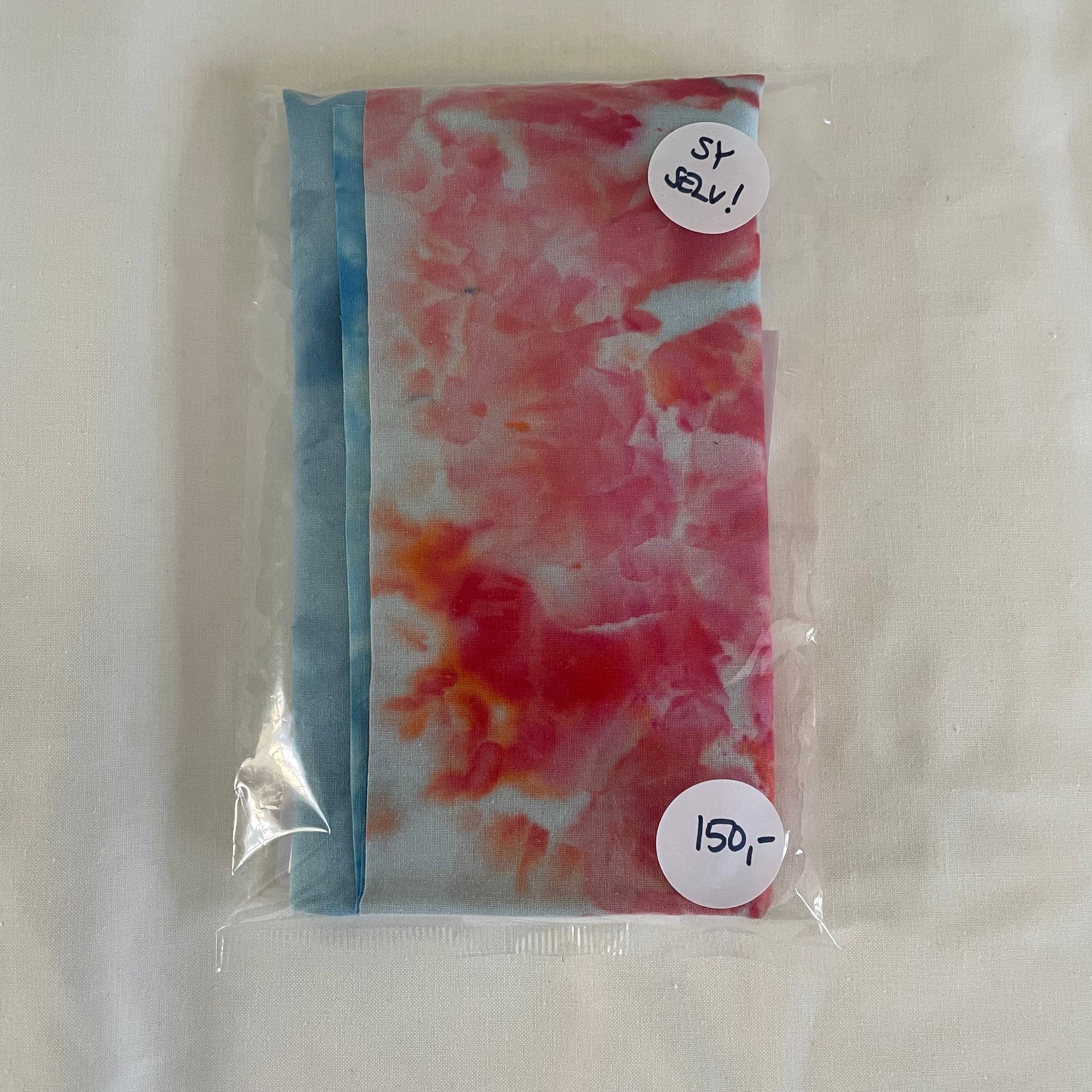 Et sy selv kit til en foret pose med håndtag og lukkesnore. Yderstoffet er farvet med is-farvningsmetoden, hvor stoffet dækkes med is og drysses med farvepulver, hvorefter farven langsomt trækker ned i stoffet efterhånden som isen smelter. Resultatet er fuldstændig uforudsigeligt, hvorved hver pose er unik.