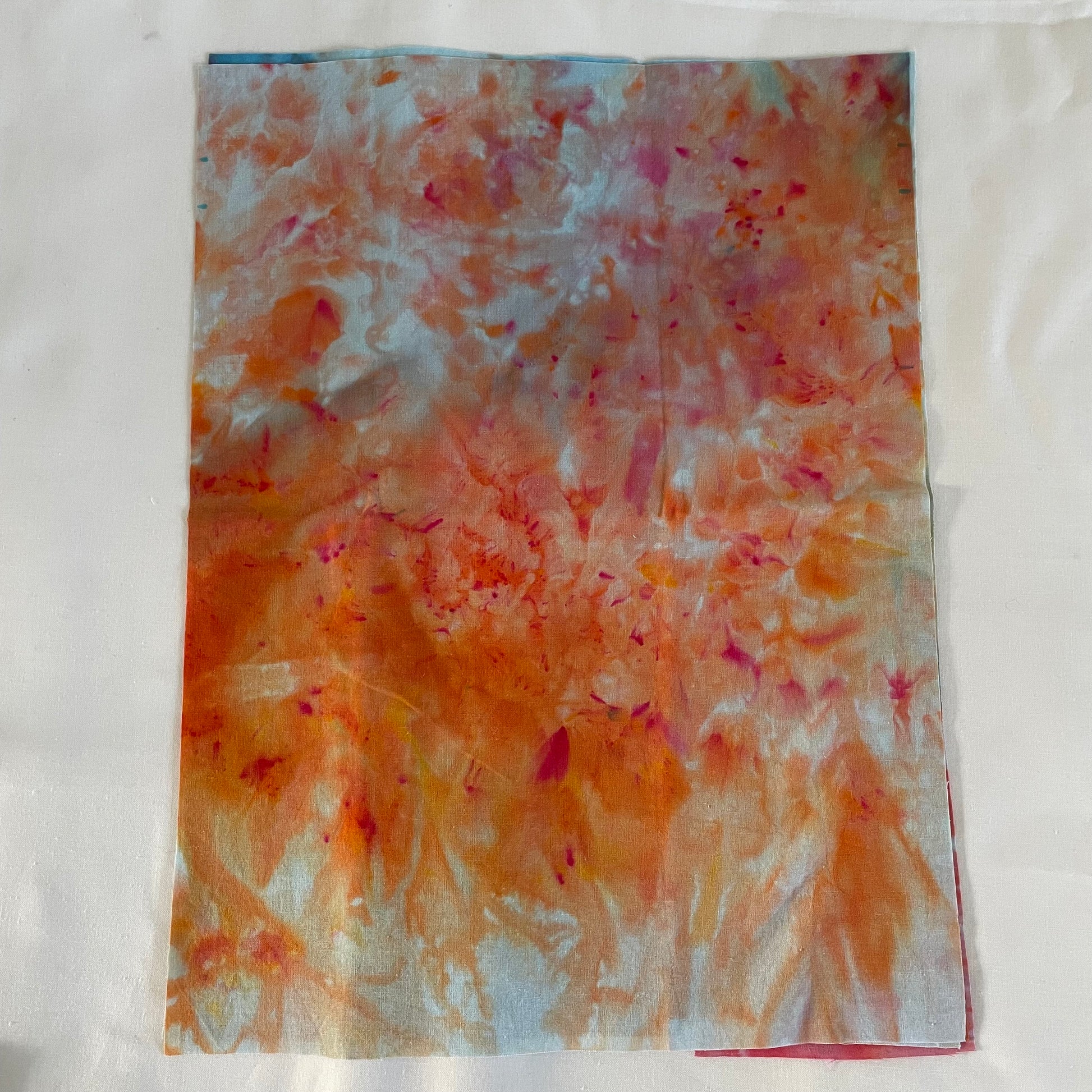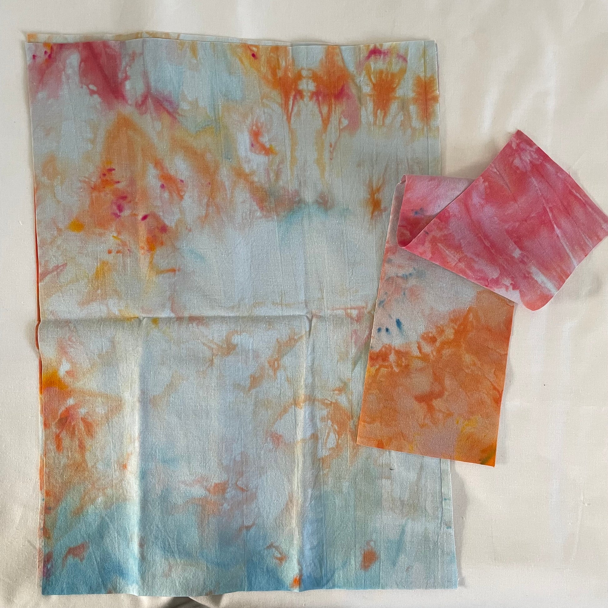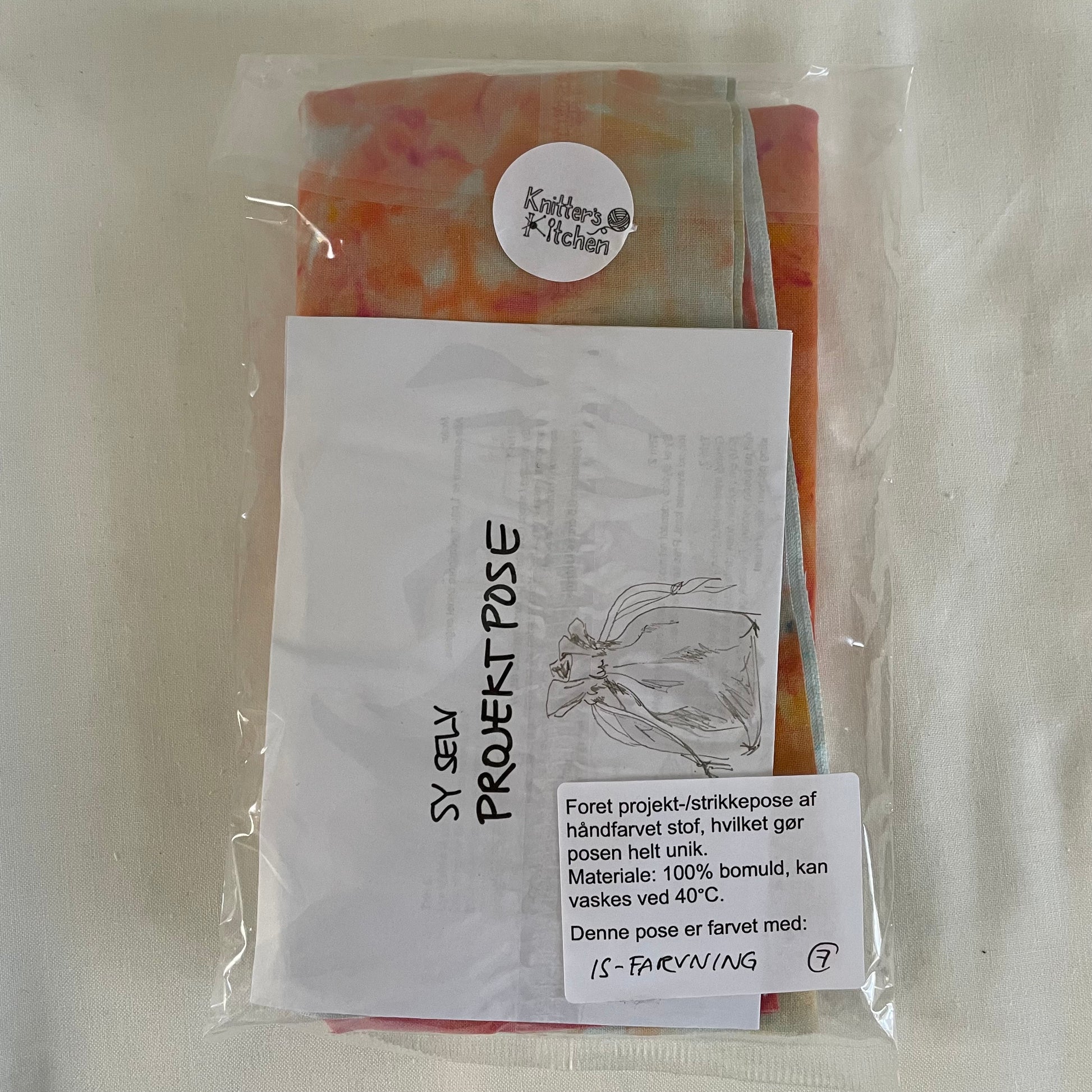 Et sy selv kit til en foret pose med håndtag og lukkesnore. Yderstoffet er farvet med is-farvningsmetoden, hvor stoffet dækkes med is og drysses med farvepulver, hvorefter farven langsomt trækker ned i stoffet efterhånden som isen smelter. Resultatet er fuldstændig uforudsigeligt, hvorved hver pose er unik.