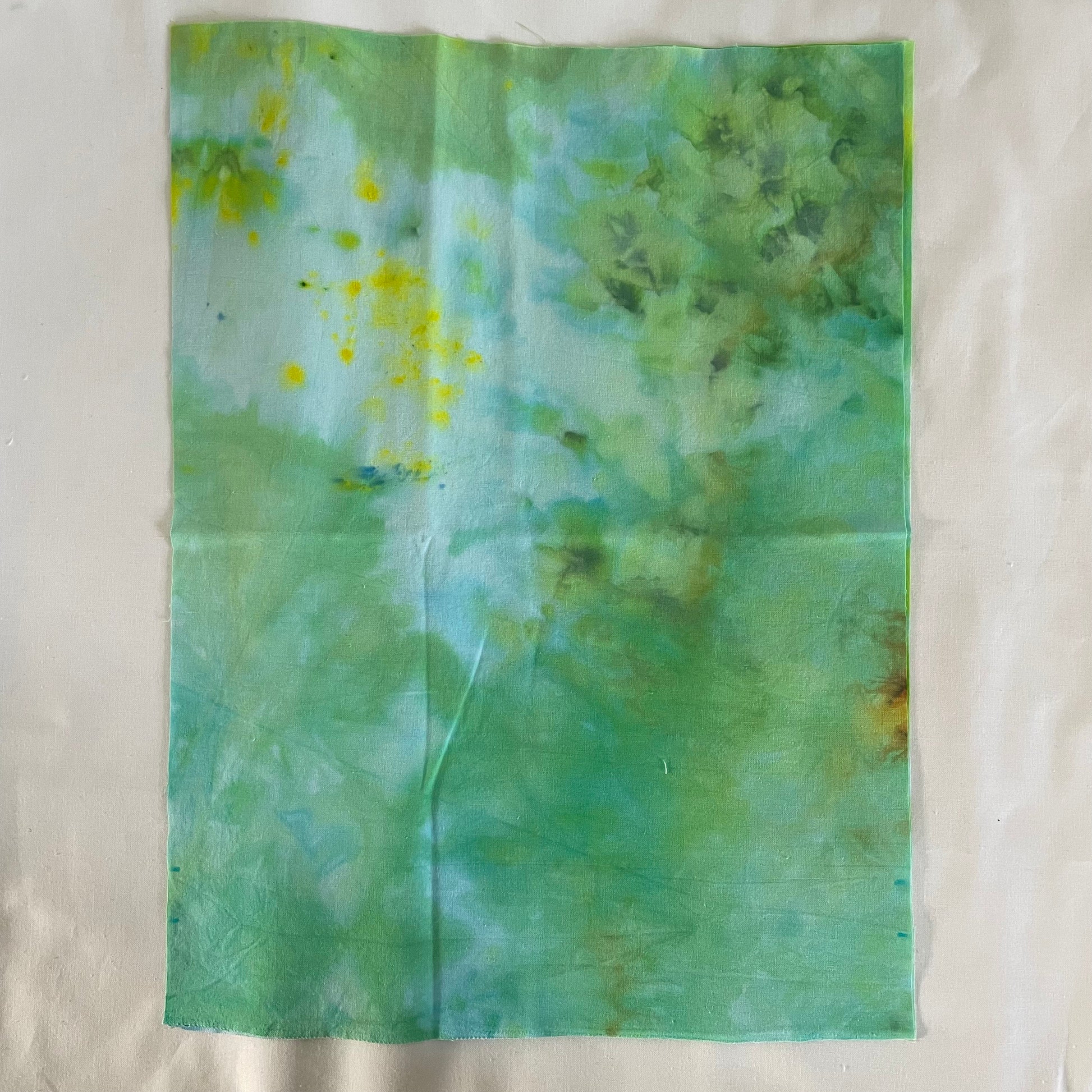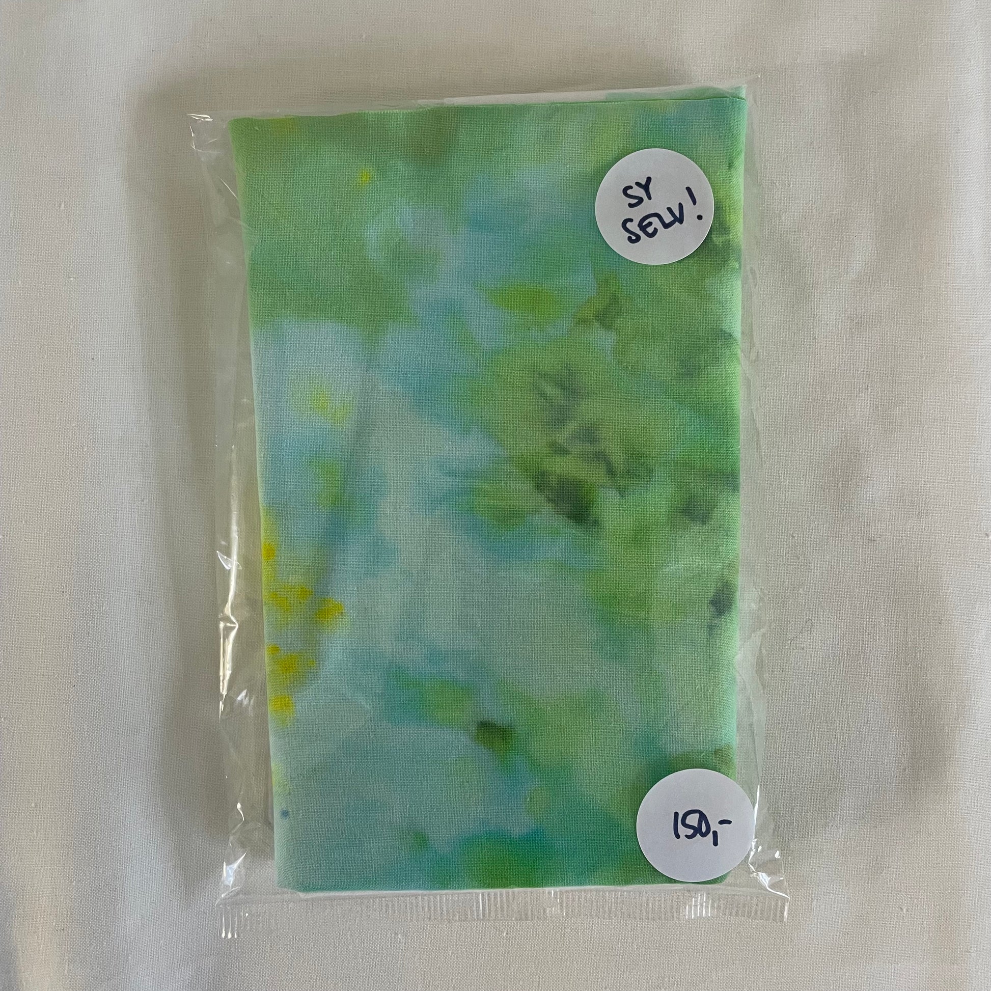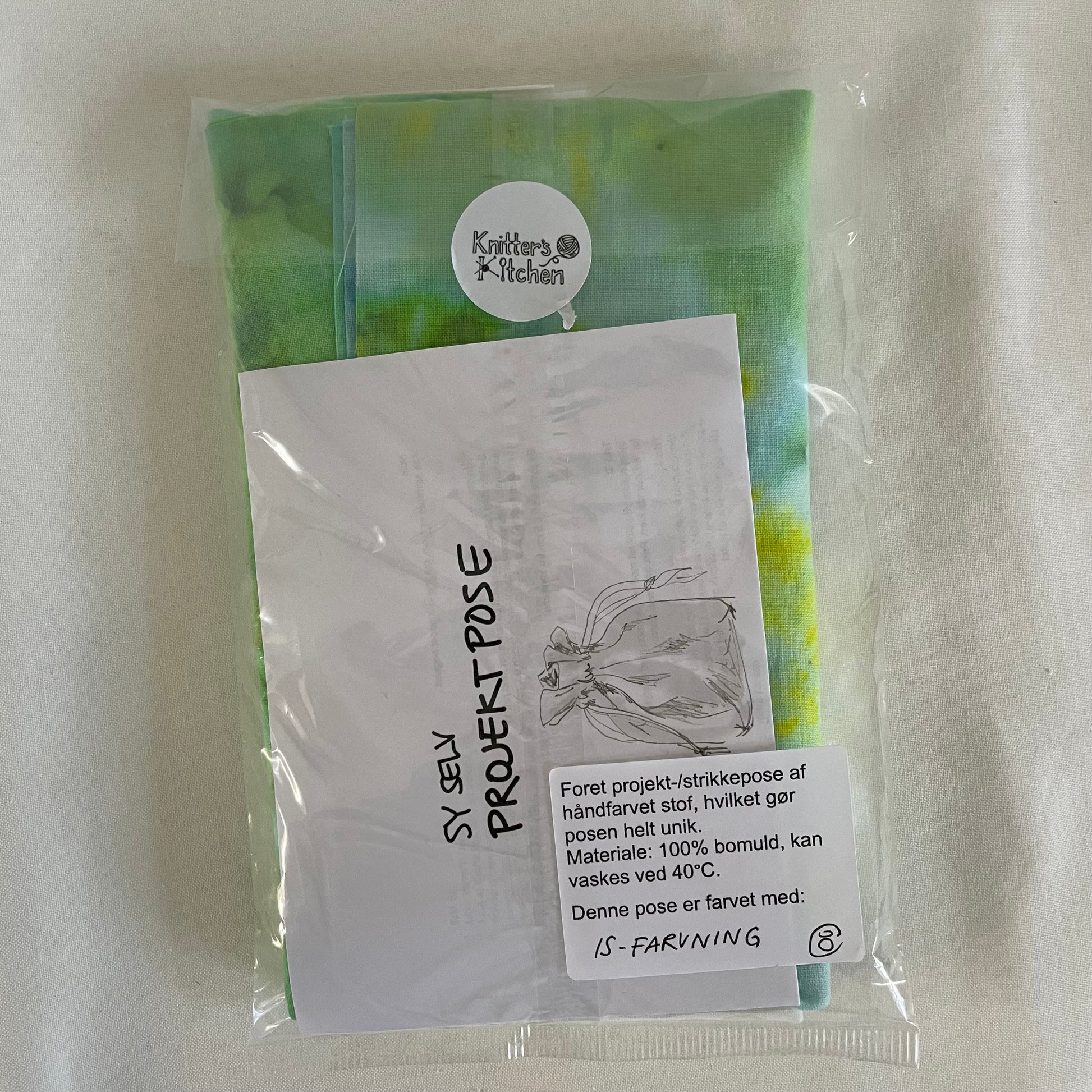 Et sy selv kit til en foret pose med håndtag og lukkesnore. Yderstoffet er farvet med is-farvningsmetoden, hvor stoffet dækkes med is og drysses med farvepulver, hvorefter farven langsomt trækker ned i stoffet efterhånden som isen smelter. Resultatet er fuldstændig uforudsigeligt, hvorved hver pose er unik.