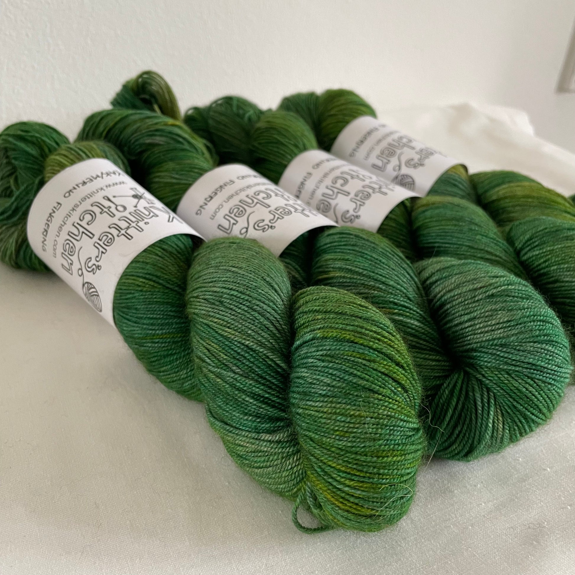 "Forest Floor" består af grønne toner i forskellige nuancer, med ekstra dybde grundet den gråbrune garnbase. Denne farve er en OOAK (One Of A Kind), hvilket vil sige at den ikke nødvendigvis kan farves igen.